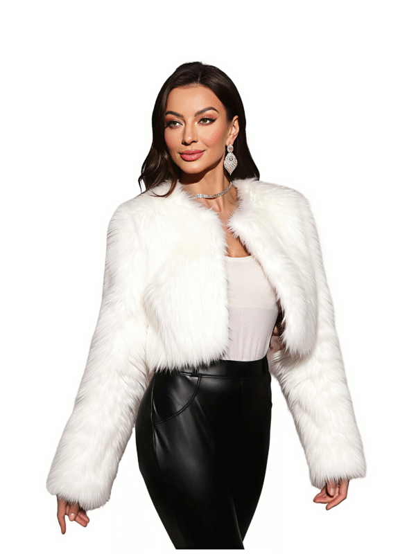 Este abrigo de peluche combina suavidad, elegancia y calidez en una sola prenda. Con su diseño de manga larga y acabado sofisticado, es ideal para destacar en eventos, fiestas o cenas especiales. Un toque de glamour perfecto para cualquier look.